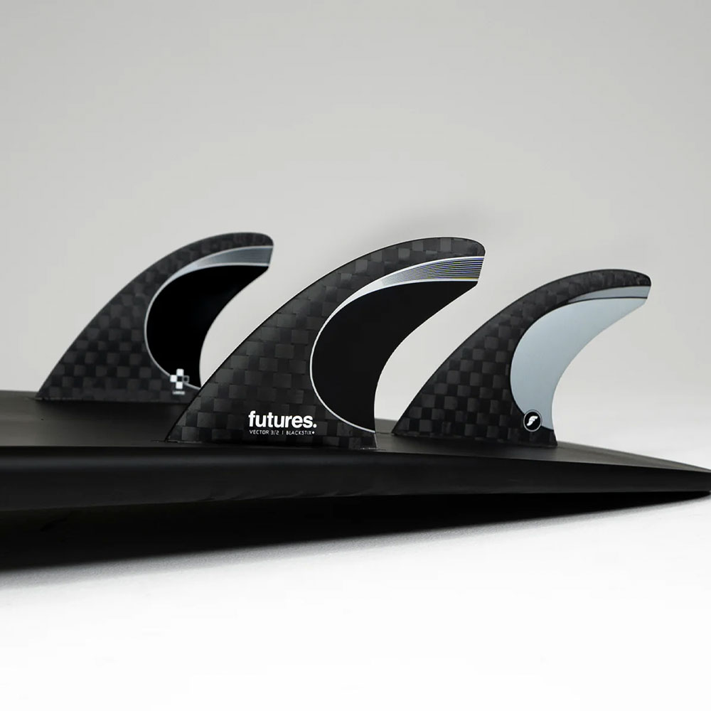 The Vector 3/2 Blackstix+ is the next evolution in Futures Fins’ high-performance fin technology, advancing beyond the previous Vector 3/2 in Alpha construction. Unlike traditional Blackstix, the Blackstix+ features a stiffer layup, ensuring the Vector 3/2 foils stay fully engaged throughout turns. This increased stiffness and resonance enhances drive, hold, and spring back providing more control and power without sacrificing the fluid rail-to-rail transition. The result is a fin that delivers a precise yet responsive, lively feel, making it ideal for surfers looking to elevate their performance in a variety of conditions.